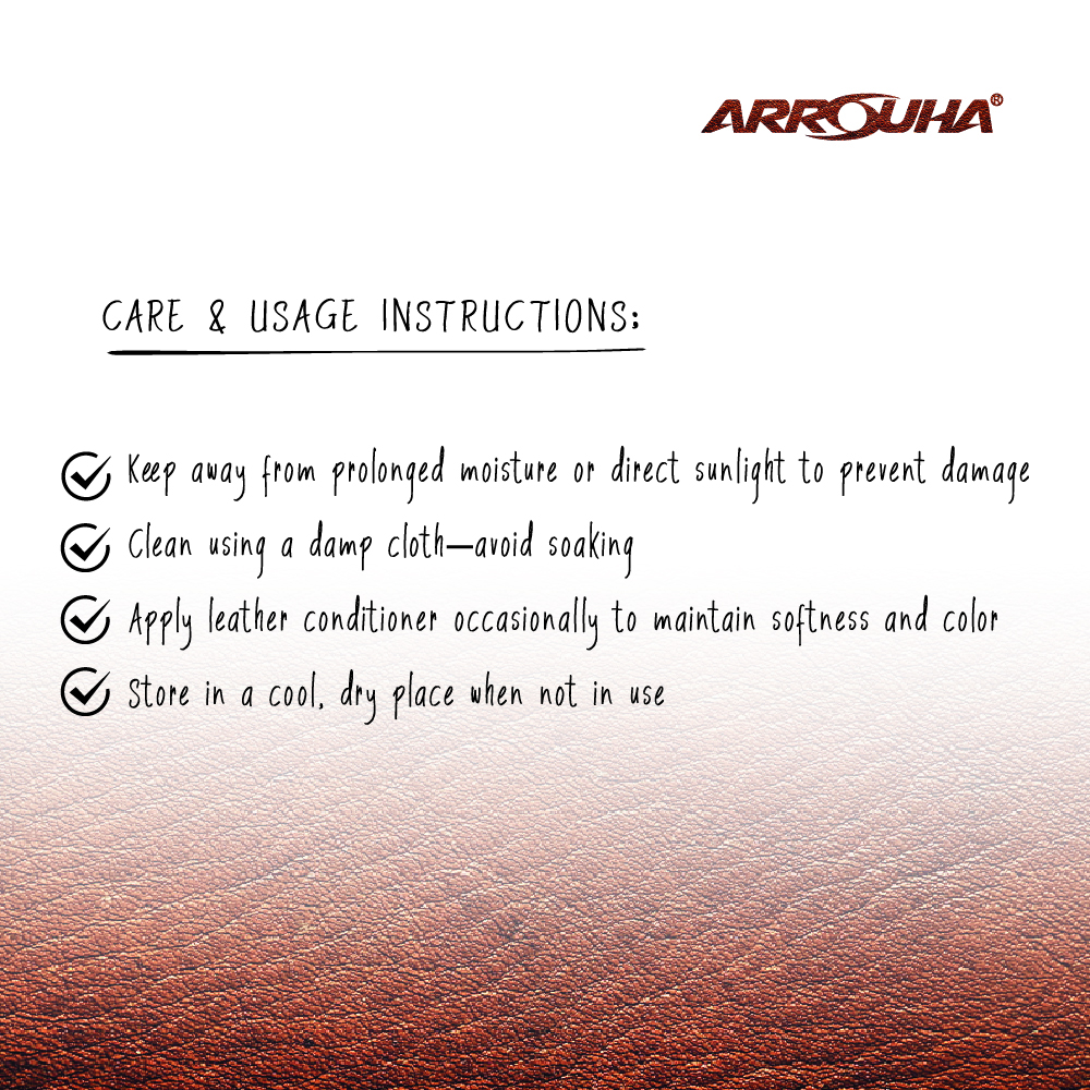 • Apply leather conditioner occasionally to maintain softness and color